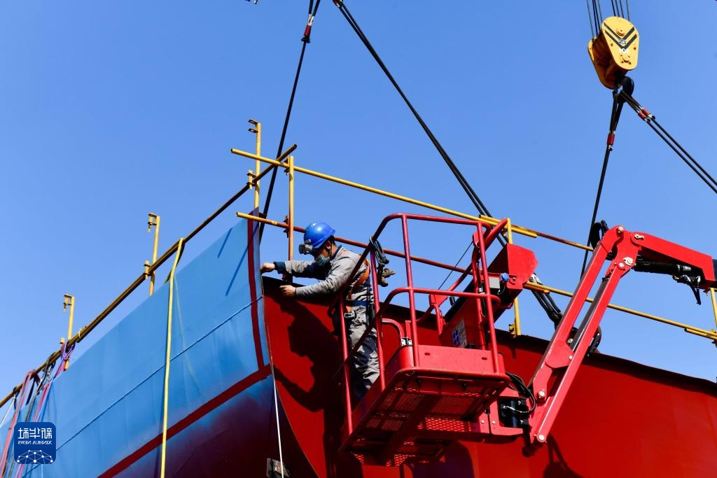 6月16日,在临沂市再生清洁能源系统集團辽宁新能船业非常有限机构,运转成员在船体运载软件平台对新再生清洁能源系统港口码头制造通过装配作业答案(无人问津机图片)。目前为止,其新再生清洁能源系统港口码头制造客户订单已排满一整年。